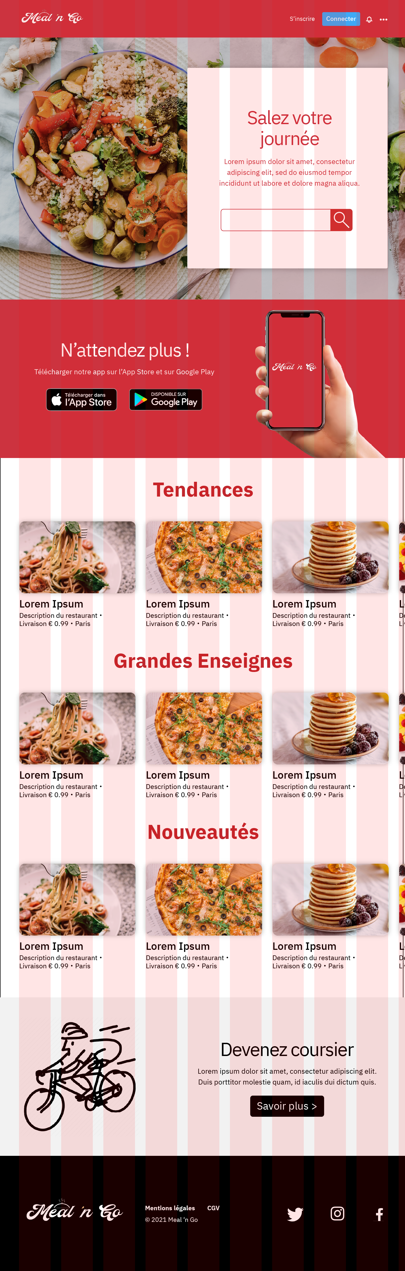 Le suivant concernait la création d'un site de livraison à domicile, en respectant les exigences en design responsive, mais aussi en utilisant une grille, permettant de mieux structurer et organiser les différents contenus du site. Il est en partie basé sur un wireframe préfabriqué.