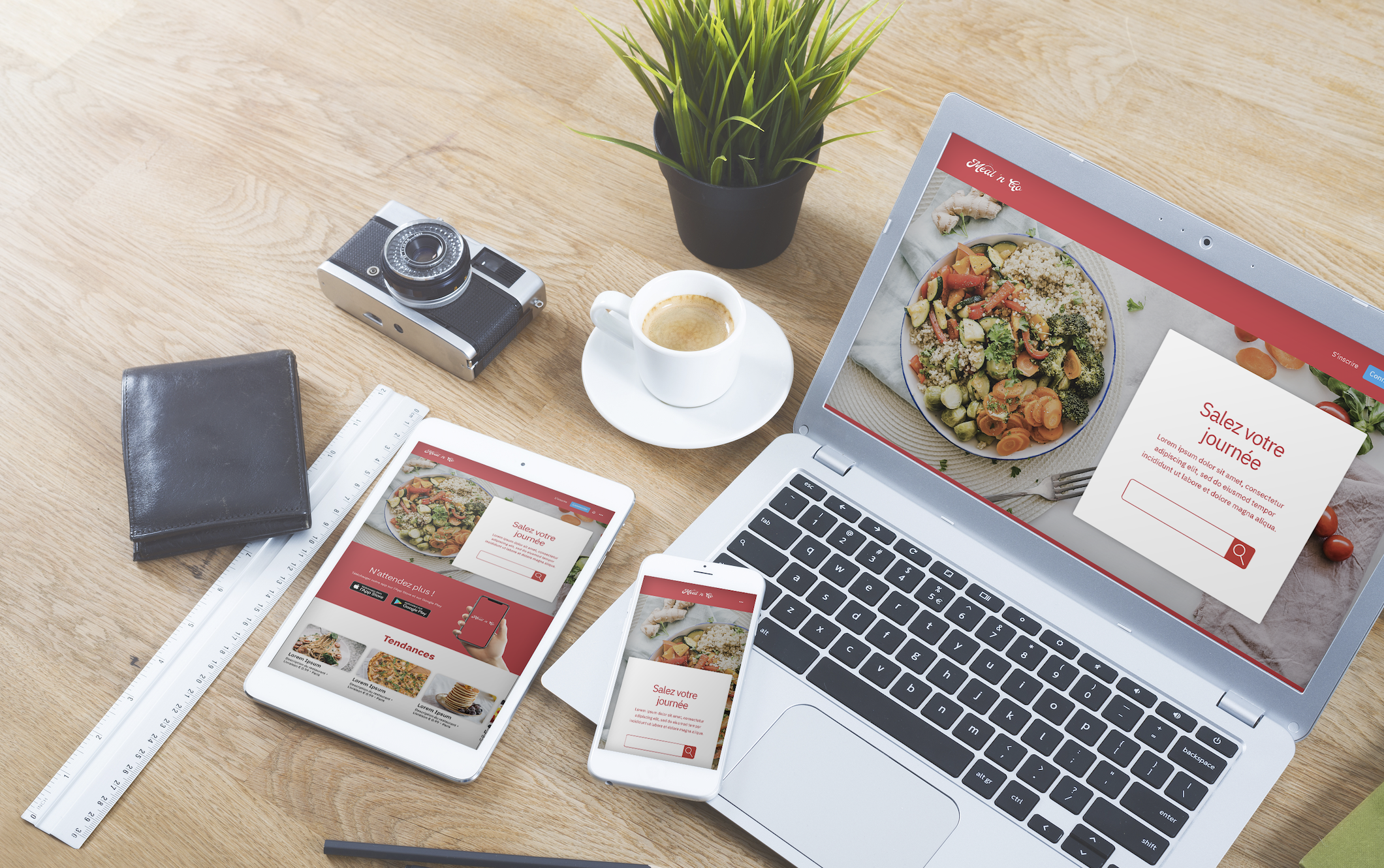 Trois maquettes de ce type ont été crées, une version "desktop", tablette (ci-dessous) et pour smartphones.